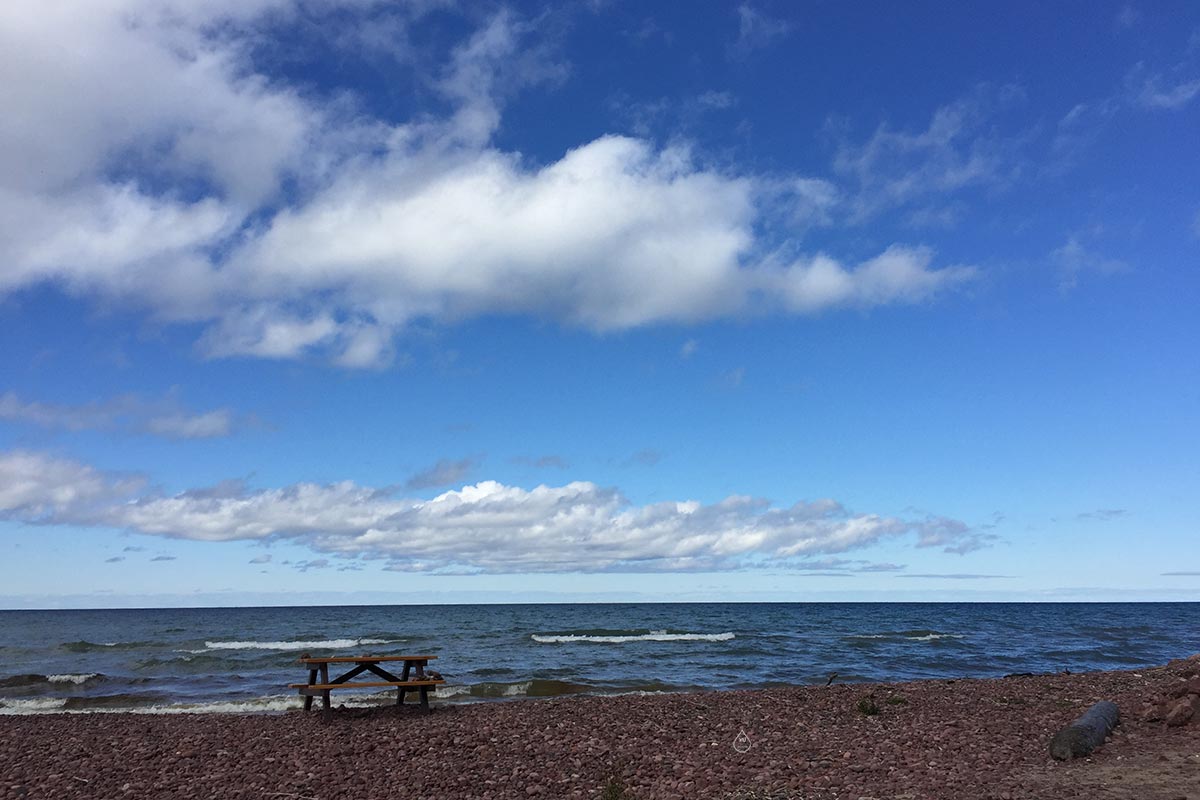 Gorgeous as usually, the windy waterfront side provide the blue sky and blue lake surface. Waves after waves rush on the shores.