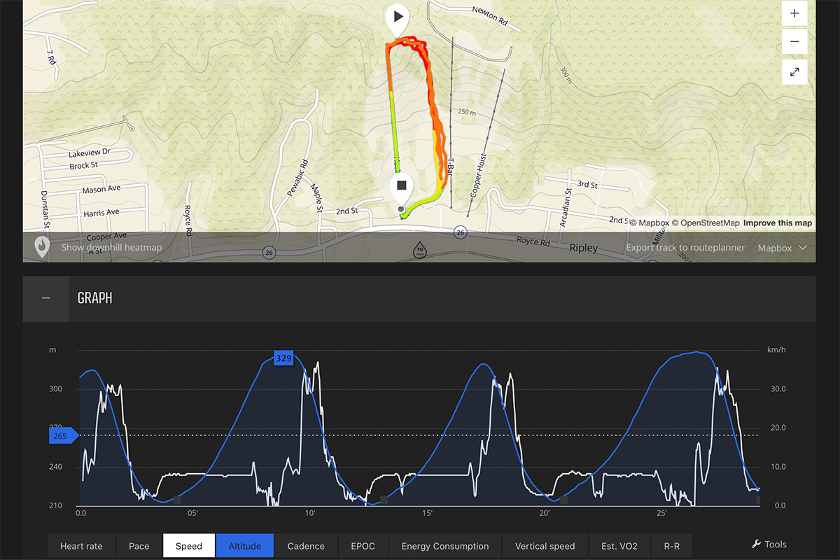 In addition, there are some basic data to understand the Loop of Central Bowl. The altitude difference is around 120 m from the hill to the bottom. My maximum speed is around 30 km/h. The speed for the chair lift is 8 km/h.